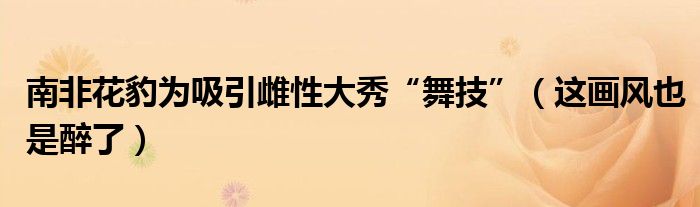 大家好,綜合小編來為大家講解下。南非花豹為吸引雌性大秀“舞技”,這畫風也是醉了很多人還不知道,現在讓我們一起來看看吧!