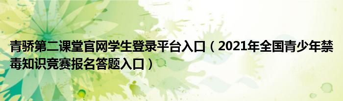 大家好,小安來為大家解答以上的問題青驕第二課堂官網學生登錄平臺入口,2021年全國青少年禁毒知識競賽報名答題入口這個很多人還不知道,現在讓我們一起來看看吧!