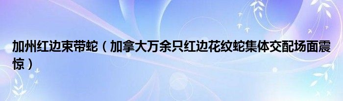 大家好,綜合小編來為大家講解下。加州紅邊束帶蛇,加拿大萬余只紅邊花紋蛇集體交配場面震驚很多人還不知道,現在讓我們一起來看看吧!
