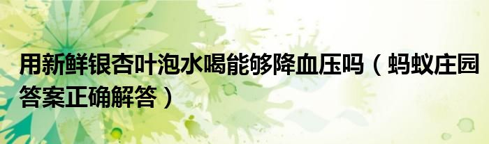 大家好,小安來為大家解答以上的問題用新鮮銀杏葉泡水喝能夠降血壓嗎,螞蟻莊園答案正確解答這個很多人還不知道,現在讓我們一起來看看吧!