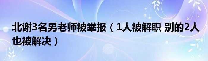 大家好,綜合小編來為大家講解下。北謝3名男老師被舉報,1人被解職 別的2人也被解決很多人還不知道,現在讓我們一起來看看吧!