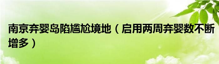 大家好,小安來為大家解答以上的問題南京棄嬰島陷尷尬境地,啟用兩周棄嬰數(shù)不斷增多這個很多人還不知道,現(xiàn)在讓我們一起來看看吧!