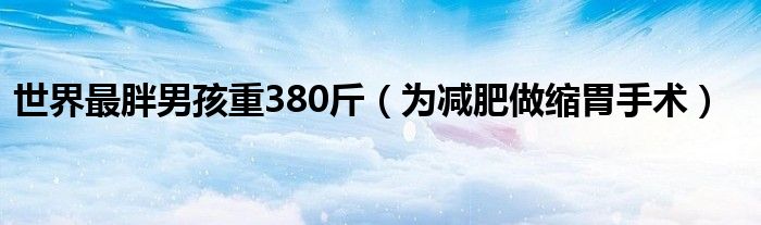 大家好,綜合小編來為大家講解下。世界最胖男孩重380斤,為減肥做縮胃手術很多人還不知道,現在讓我們一起來看看吧!