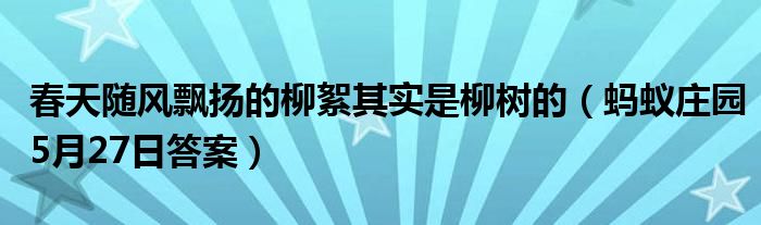 大家好,綜合小編來為大家講解下。春天隨風飄揚的柳絮其實是柳樹的,螞蟻莊園5月27日答案很多人還不知道,現在讓我們一起來看看吧!