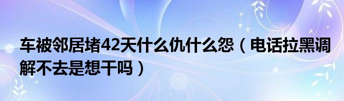 大家好,綜合小編來為大家講解下。車被鄰居堵42天什么仇什么怨,電話拉黑調(diào)解不去是想干嗎很多人還不知道,現(xiàn)在讓我們一起來看看吧!