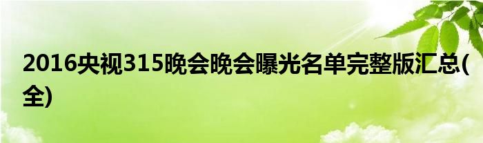 大家好,小安來為大家解答以上的問題2016央視315晚會晚會曝光名單完整版匯總(全)這個很多人還不知道,現(xiàn)在讓我們一起來看看吧!