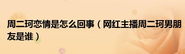 大家好,小安來為大家解答以上的問題周二珂戀情是怎么回事,網(wǎng)紅主播周二珂男朋友是誰這個(gè)很多人還不知道,現(xiàn)在讓我們一起來看看吧!