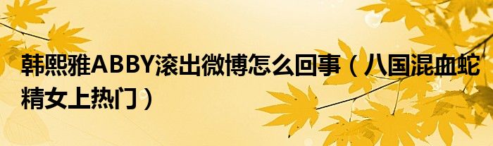 大家好,小安來為大家解答以上的問題韓熙雅ABBY滾出微博怎么回事,八國混血蛇精女上熱門這個很多人還不知道,現在讓我們一起來看看吧!