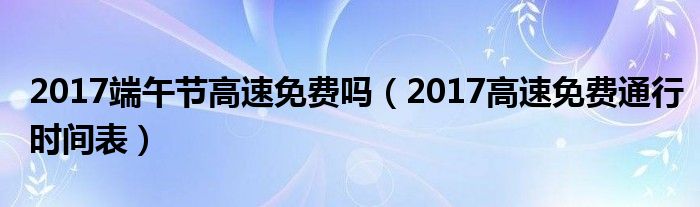 大家好,綜合小編來為大家講解下。2017端午節高速免費嗎,2017高速免費通行時間表很多人還不知道,現在讓我們一起來看看吧!