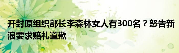 大家好,小安來為大家解答以上的問題開封原組織部長李森林女人有300名?怒告新浪要求賠禮道歉這個很多人還不知道,現在讓我們一起來看看吧!