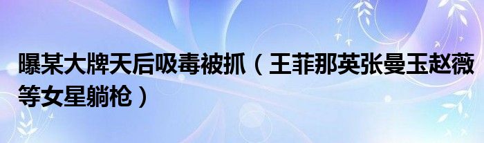 大家好,小安來為大家解答以上的問題曝某大牌天后吸毒被抓,王菲那英張曼玉趙薇等女星躺槍這個很多人還不知道,現在讓我們一起來看看吧!
