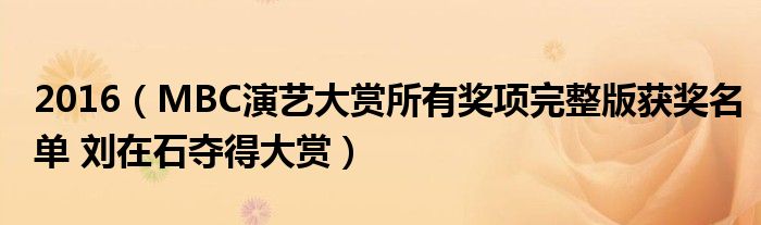 大家好,小安來為大家解答以上的問題2016,MBC演藝大賞所有獎項完整版獲獎名單 劉在石奪得大賞這個很多人還不知道,現在讓我們一起來看看吧!