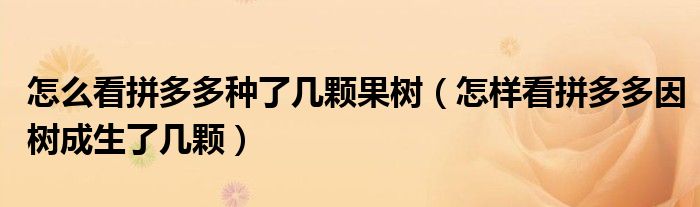 大家好,綜合小編來為大家講解下。怎么看拼多多種了幾顆果樹,怎樣看拼多多因樹成生了幾顆很多人還不知道,現在讓我們一起來看看吧!