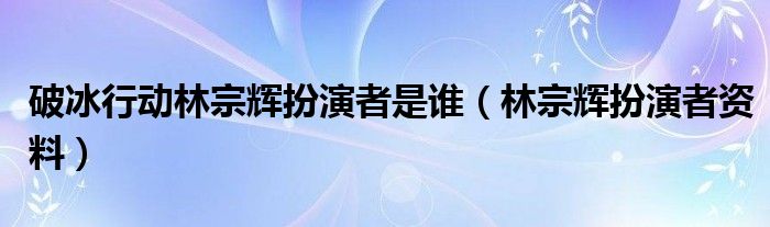 大家好,綜合小編來為大家講解下。破冰行動林宗輝扮演者是誰,林宗輝扮演者資料很多人還不知道,現在讓我們一起來看看吧!