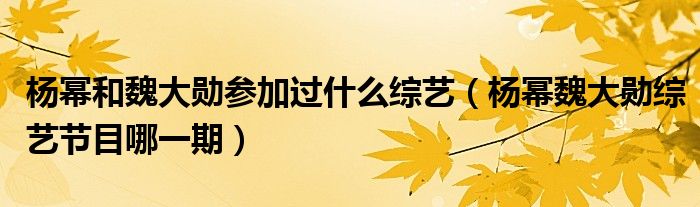 大家好,綜合小編來為大家講解下。楊冪和魏大勛參加過什么綜藝,楊冪魏大勛綜藝節目哪一期很多人還不知道,現在讓我們一起來看看吧!
