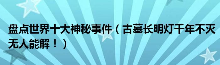 大家好,綜合小編來為大家講解下。盤點世界十大神秘事件,古墓長明燈千年不滅無人能解!很多人還不知道,現在讓我們一起來看看吧!