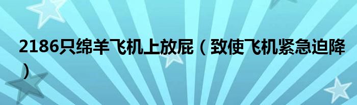 大家好,綜合小編來為大家講解下。2186只綿羊飛機上放屁,致使飛機緊急迫降很多人還不知道,現在讓我們一起來看看吧!