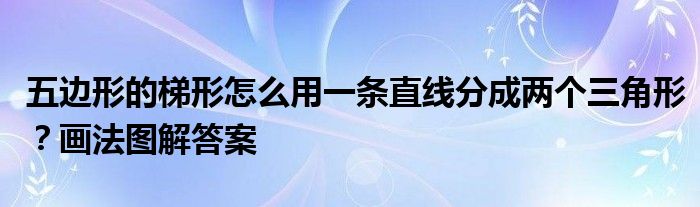 大家好,小安來為大家解答以上的問題五邊形的梯形怎么用一條直線分成兩個三角形?畫法圖解答案這個很多人還不知道,現(xiàn)在讓我們一起來看看吧!
