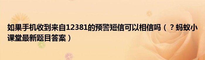 大家好,小安來為大家解答以上的問題如果手機收到來自12381的預警短信可以相信嗎,?螞蟻小課堂最新題目答案這個很多人還不知道,現在讓我們一起來看看吧!