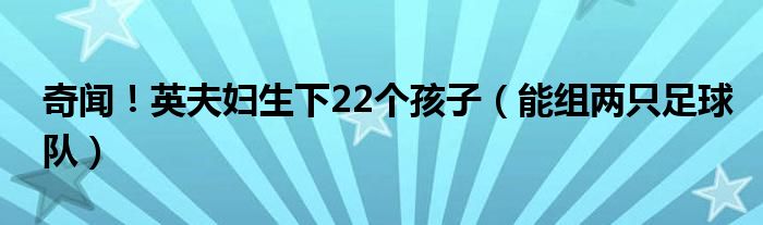 大家好,綜合小編來為大家講解下。奇聞!英夫婦生下22個孩子,能組兩只足球隊很多人還不知道,現在讓我們一起來看看吧!