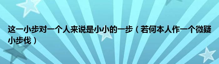大家好,綜合小編來為大家講解下。這一小步對一個人來說是小小的一步,若何本人作一個微疑小步伐很多人還不知道,現(xiàn)在讓我們一起來看看吧!