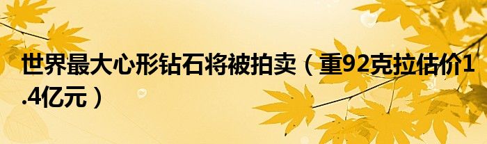 大家好,綜合小編來(lái)為大家講解下。世界最大心形鉆石將被拍賣,重92克拉估價(jià)1.4億元很多人還不知道,現(xiàn)在讓我們一起來(lái)看看吧!