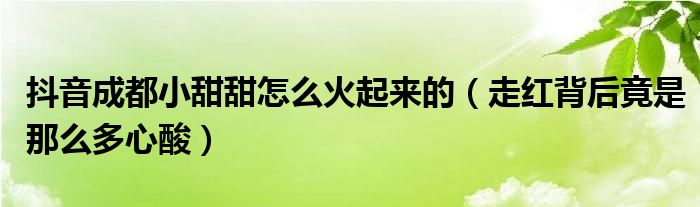 大家好,小安來為大家解答以上的問題抖音成都小甜甜怎么火起來的,走紅背后竟是那么多心酸這個(gè)很多人還不知道,現(xiàn)在讓我們一起來看看吧!