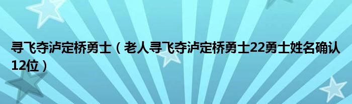 大家好,綜合小編來為大家講解下。尋飛奪瀘定橋勇士,老人尋飛奪瀘定橋勇士22勇士姓名確認12位很多人還不知道,現在讓我們一起來看看吧!