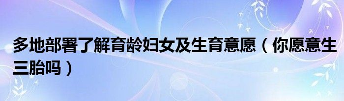 大家好,綜合小編來為大家講解下。多地部署了解育齡婦女及生育意愿,你愿意生三胎嗎很多人還不知道,現(xiàn)在讓我們一起來看看吧!