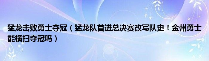 大家好,綜合小編來為大家講解下。猛龍擊敗勇士奪冠,猛龍隊首進總決賽改寫隊史!金州勇士能橫掃奪冠嗎很多人還不知道,現(xiàn)在讓我們一起來看看吧!