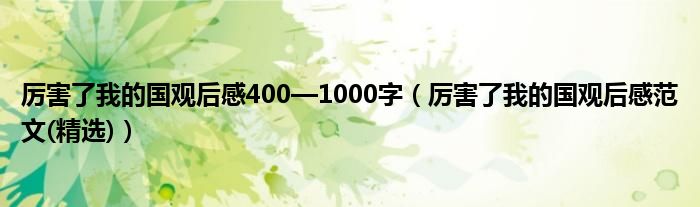 篇十:《厲害了,我的國》觀后感:讓人自豪讓人震撼1000字