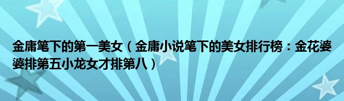 大家好,綜合小編來為大家講解下。金庸筆下的第一美女,金庸小說筆下的美女排行榜:金花婆婆排第五小龍女才排第八很多人還不知道,現在讓我們一起來看看吧!