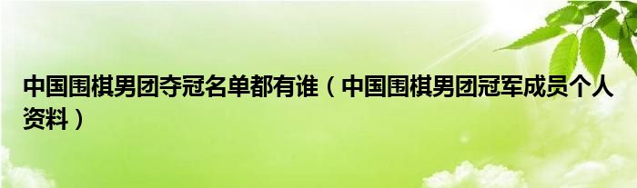 大家好,綜合小編來為大家講解下。中國圍棋男團奪冠名單都有誰,中國圍棋男團冠軍成員個人資料很多人還不知道,現在讓我們一起來看看吧!