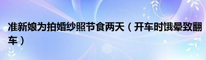大家好,小安來為大家解答以上的問題準新娘為拍婚紗照節食兩天,開車時餓暈致翻車這個很多人還不知道,現在讓我們一起來看看吧!