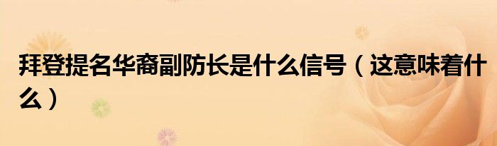 大家好,綜合小編來為大家講解下。拜登提名華裔副防長是什么信號,這意味著什么很多人還不知道,現在讓我們一起來看看吧!