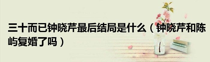 大家好,綜合小編來為大家講解下。三十而已鐘曉芹最后結局是什么,鐘曉芹和陳嶼復婚了嗎很多人還不知道,現在讓我們一起來看看吧!