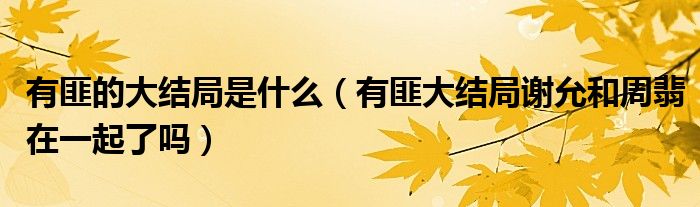 大家好,綜合小編來為大家講解下。有匪的大結局是什么,有匪大結局謝允和周翡在一起了嗎很多人還不知道,現在讓我們一起來看看吧!
