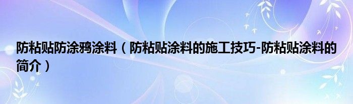 大家好,綜合小編來為大家講解下。防粘貼防涂鴉涂料,防粘貼涂料的施工技巧-防粘貼涂料的簡介很多人還不知道,現在讓我們一起來看看吧!