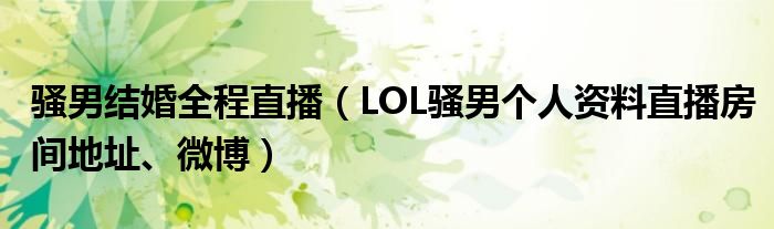 大家好,小安來為大家解答以上的問題騷男結(jié)婚全程直播,LOL騷男個人資料直播房間地址、微博這個很多人還不知道,現(xiàn)在讓我們一起來看看吧!