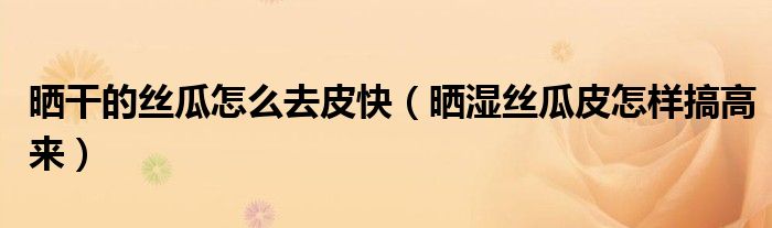 大家好,綜合小編來為大家講解下。曬干的絲瓜怎么去皮快,曬濕絲瓜皮怎樣搞高來很多人還不知道,現在讓我們一起來看看吧!