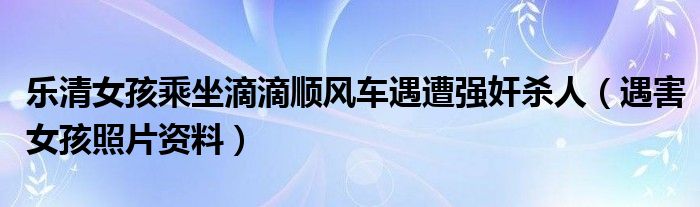大家好,小安來為大家解答以上的問題樂清女孩乘坐滴滴順風車遇遭強奸殺人,遇害女孩照片資料這個很多人還不知道,現(xiàn)在讓我們一起來看看吧!