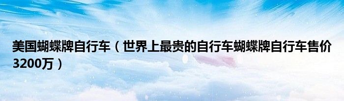 大家好,綜合小編來為大家講解下。美國蝴蝶牌自行車,世界上最貴的自行車蝴蝶牌自行車售價3200萬很多人還不知道,現在讓我們一起來看看吧!