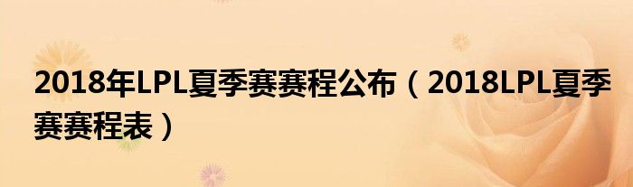 大家好,綜合小編來為大家講解下。2018年LPL夏季賽賽程公布,2018LPL夏季賽賽程表很多人還不知道,現(xiàn)在讓我們一起來看看吧!