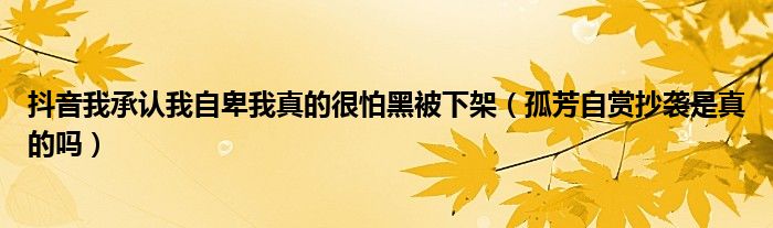 大家好,綜合小編來為大家講解下。抖音我承認(rèn)我自卑我真的很怕黑被下架,孤芳自賞抄襲是真的嗎很多人還不知道,現(xiàn)在讓我們一起來看看吧!