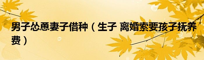 大家好,小安來為大家解答以上的問題男子慫恿妻子借種,生子 離婚索要孩子撫養費這個很多人還不知道,現在讓我們一起來看看吧!