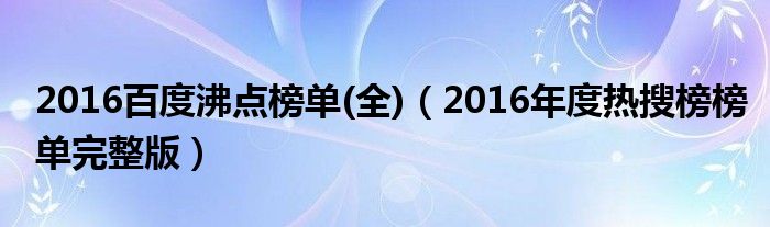 大家好,小安來為大家解答以上的問題2016百度沸點榜單(全),2016年度熱搜榜榜單完整版這個很多人還不知道,現在讓我們一起來看看吧!