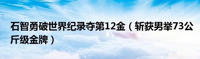 大家好,綜合小編來為大家講解下。石智勇破世界紀錄奪第12金,斬獲男舉73公斤級金牌很多人還不知道,現在讓我們一起來看看吧!