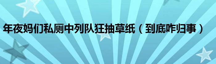 大家好,綜合小編來為大家講解下。年夜媽們私廁中列隊狂抽草紙,到底咋歸事很多人還不知道,現(xiàn)在讓我們一起來看看吧!