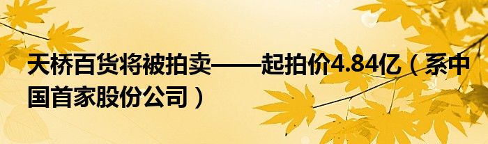 大家好,綜合小編來(lái)為大家講解下。天橋百貨將被拍賣(mài)——起拍價(jià)4.84億,系中國(guó)首家股份公司很多人還不知道,現(xiàn)在讓我們一起來(lái)看看吧!
