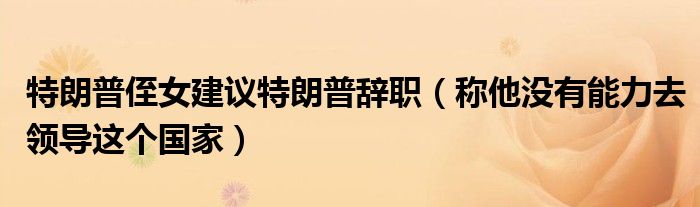 大家好,綜合小編來為大家講解下。特朗普侄女建議特朗普辭職,稱他沒有能力去領導這個國家很多人還不知道,現在讓我們一起來看看吧!